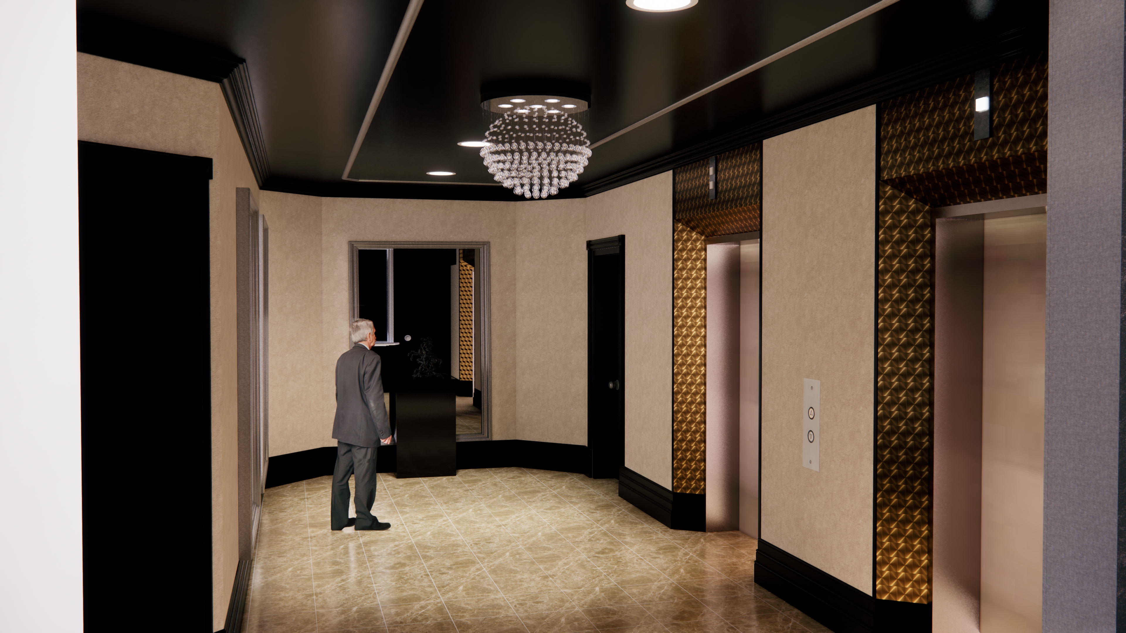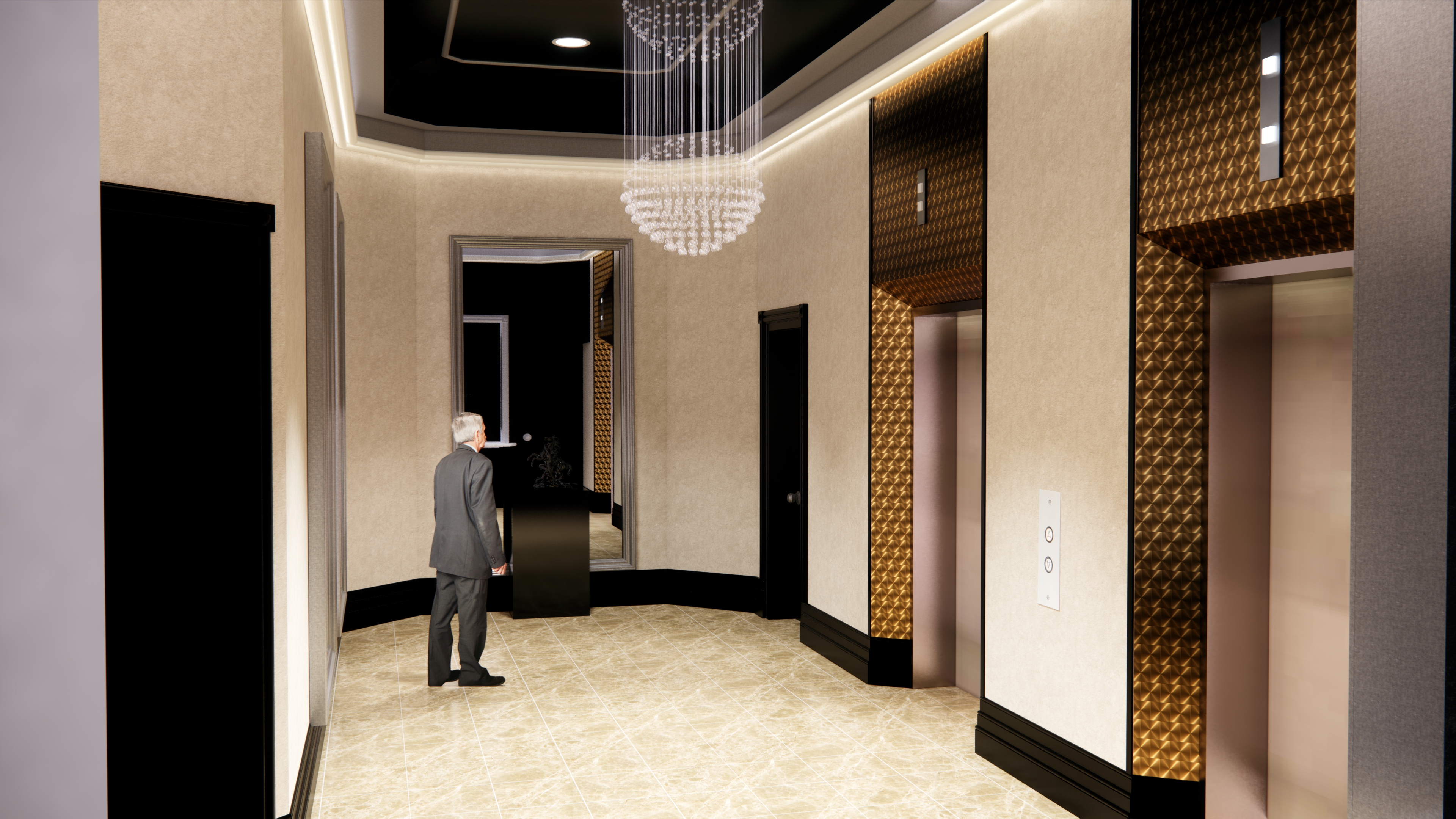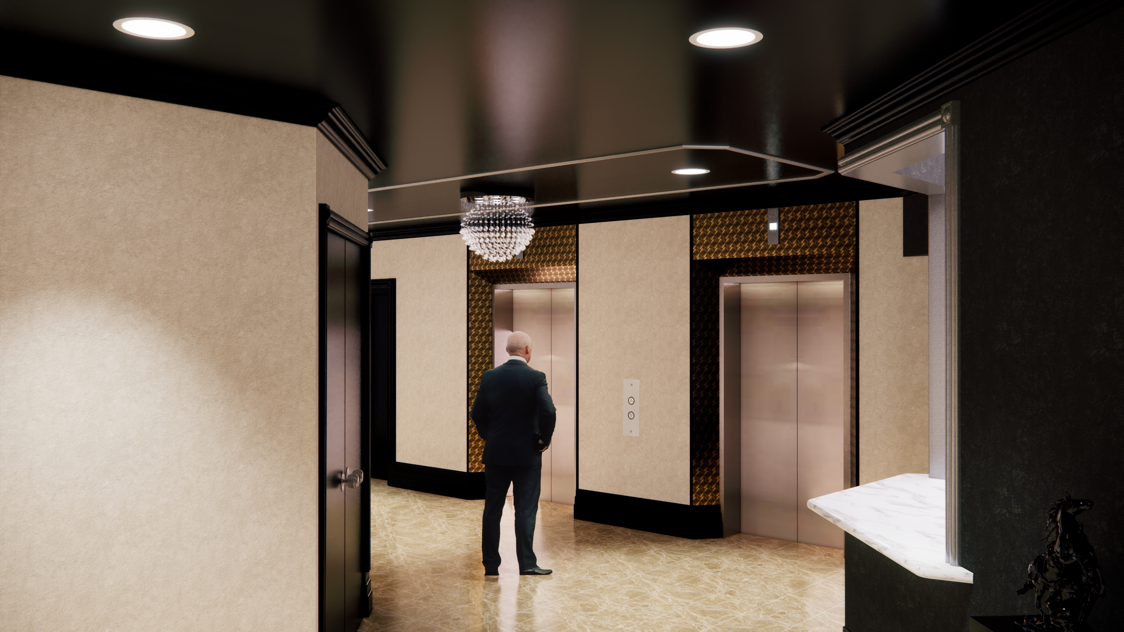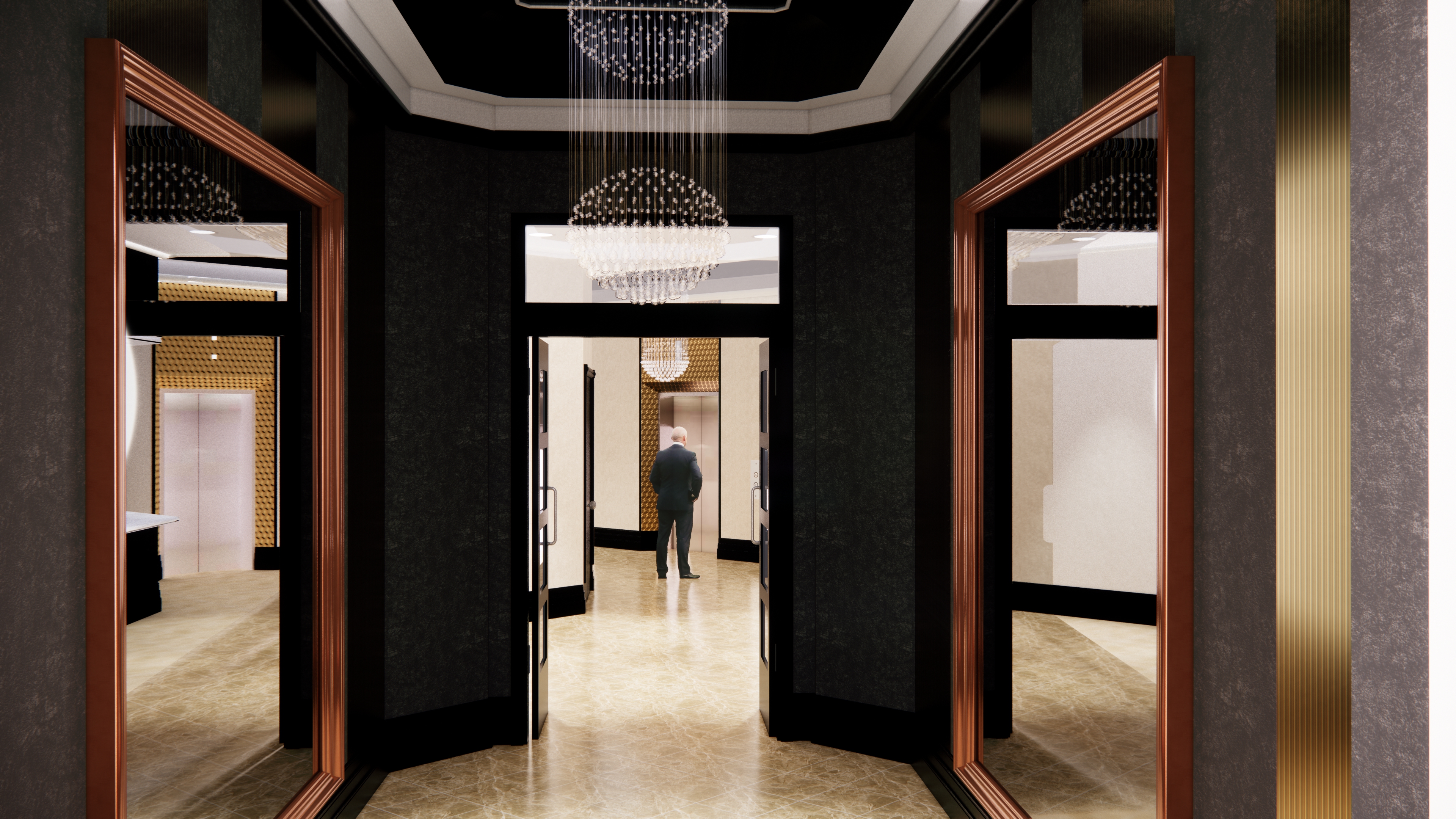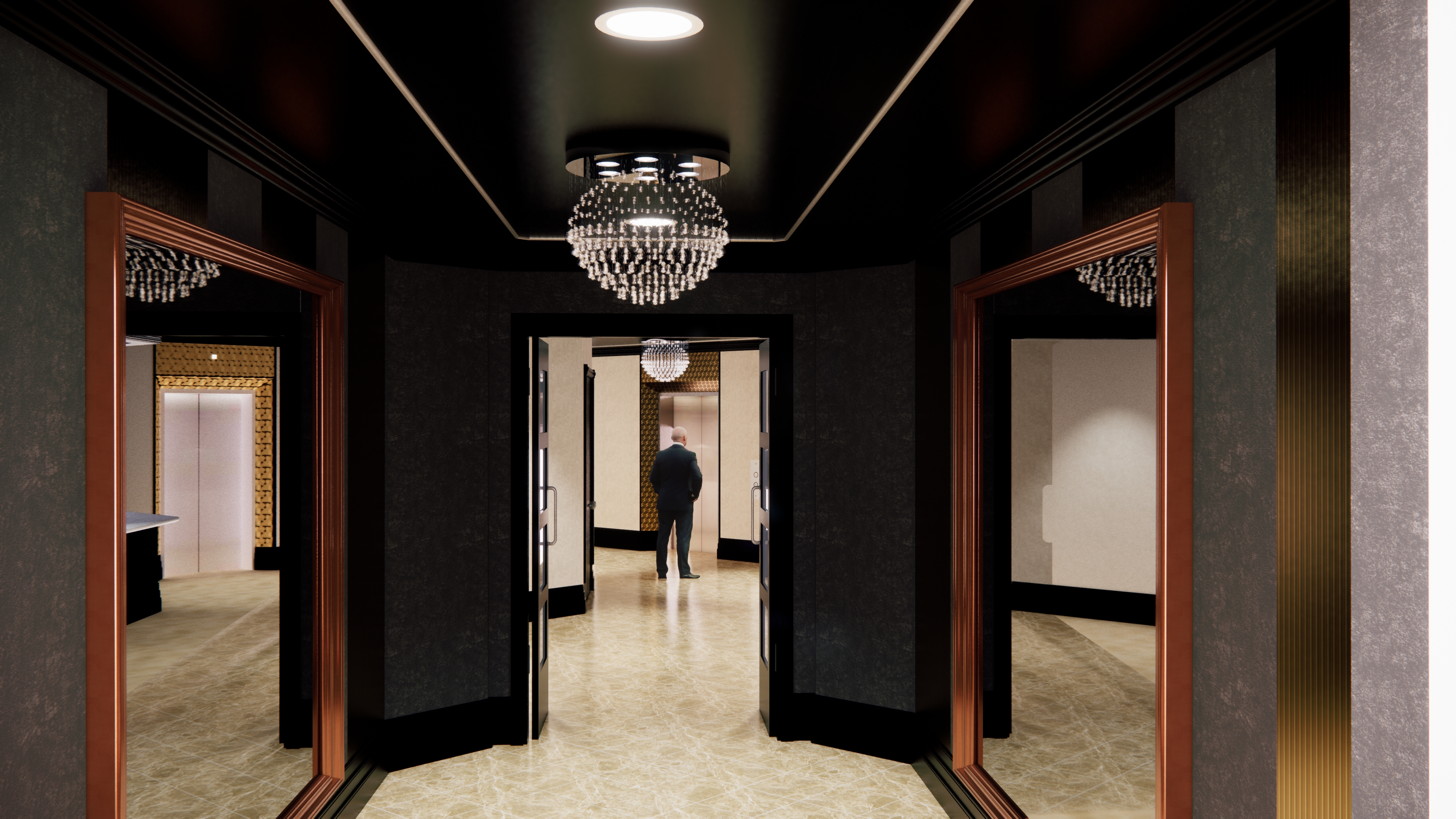 The objective of the Lobby Concept project was to explore the lowering of the ceiling heights in the entrance and lift lobby of Tattersalls Club - Hyde Park. The focus was to maintain a grand appearance, which members come to expect when visiting the club. The 3D renders are a great communication tool to facilitate decision making and ensuring everyone isspeaking the same language when design changes are afoot.